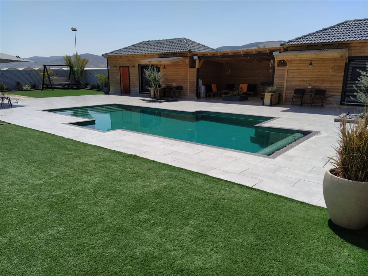 לצד בריכה גדולה, ג'קוזי ספא מפנק, מקלחון, מטבחון עם עמדת מנגל, מיטות שיזוף ועוד