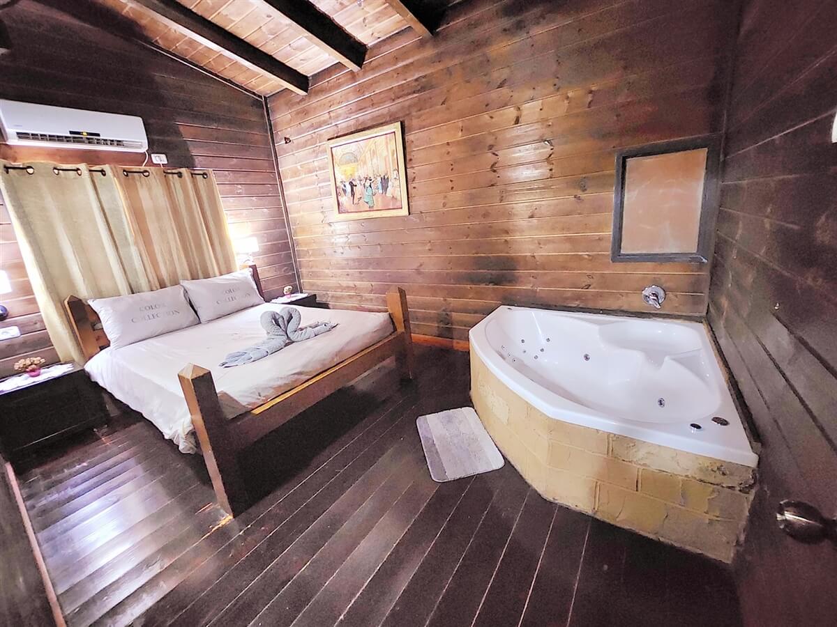 - חדר שינה עם מיטה זוגית וג'קוזי מפנק