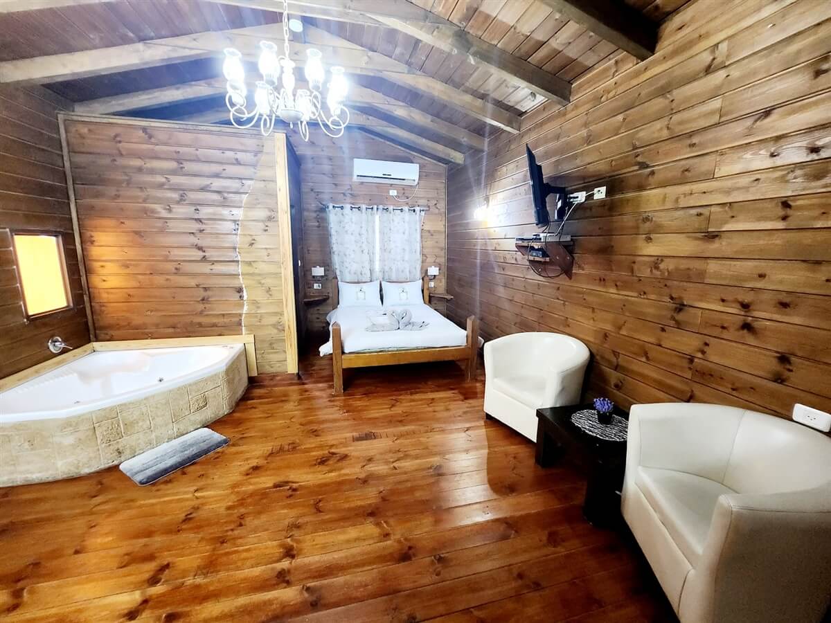 - חדר שינה עם מיטה זוגית וג'קוזי זוגי מפנק